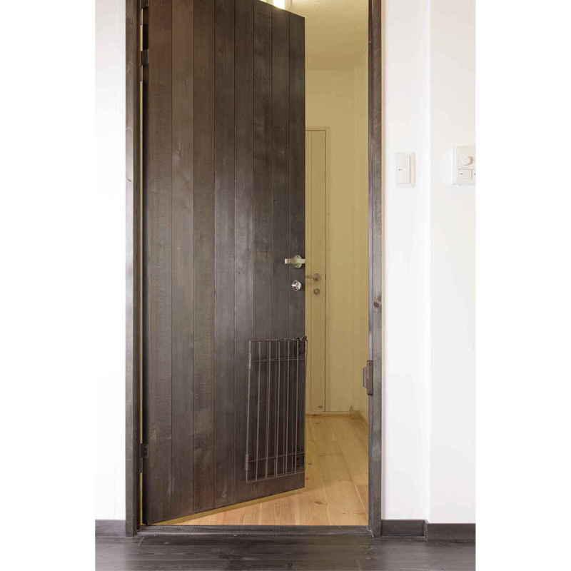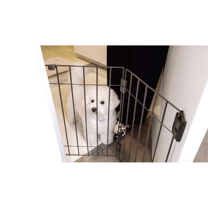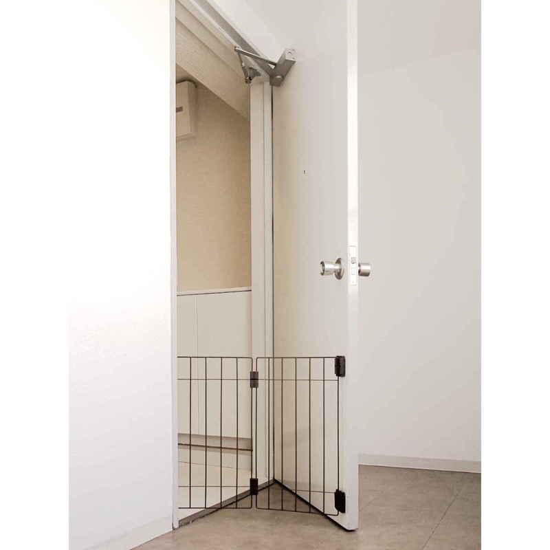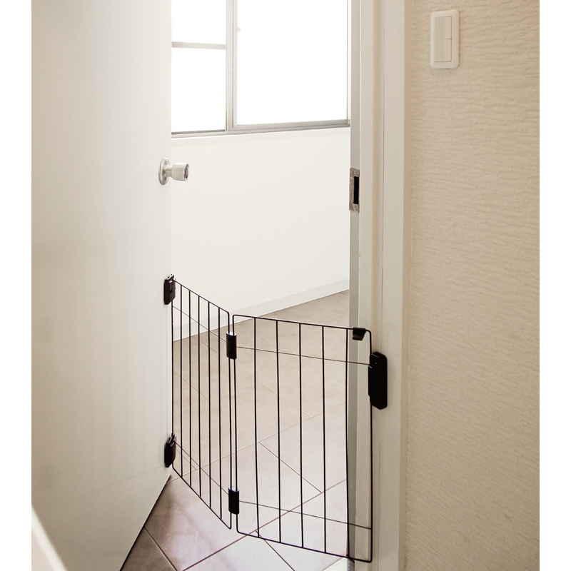 安心して玄関の扉を開けることができる 人が通るときもスムーズに通行 室内でも使用可能 掃除機がかけやすい 開き扉専用のドッグフェンス