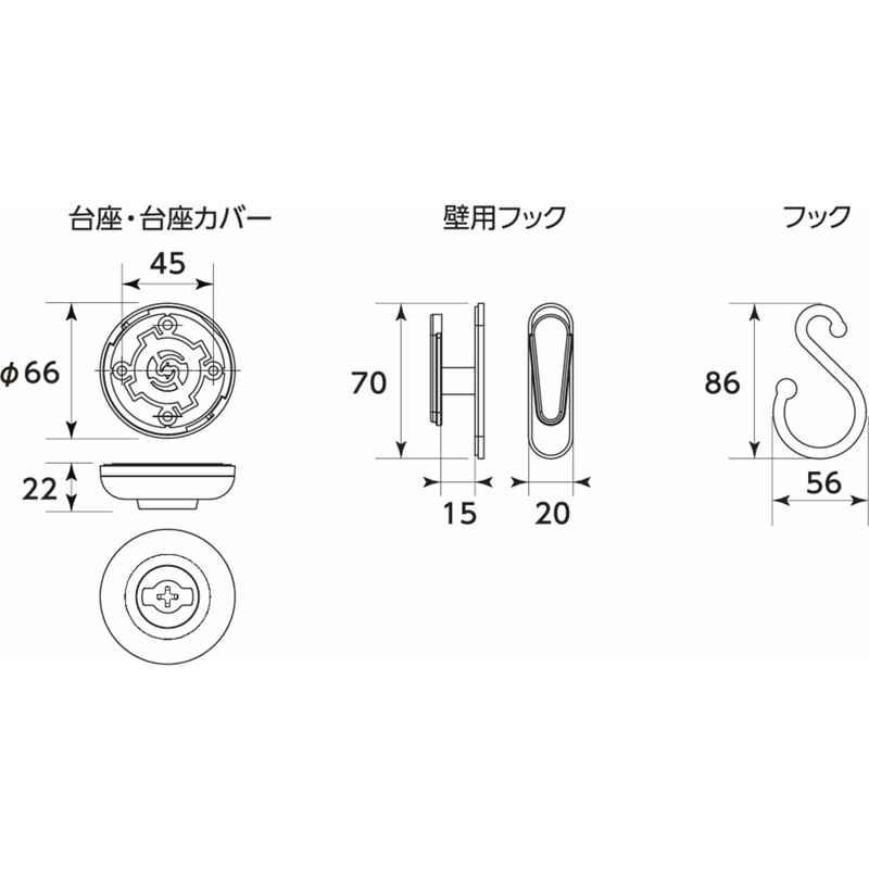 セット内容:1本(本体、天井取付けネジ、収納用フック、収納用フック取付けネジ、S字フック)