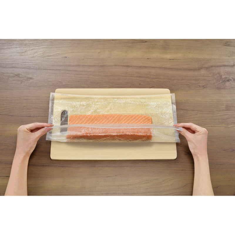 浸透圧の脱水効果を利用し食材に巻くだけで旨味を凝縮します。