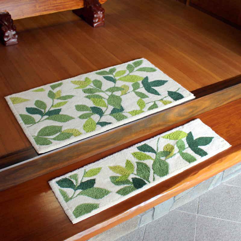 オカ 玄関マット 洗える コーナー吸着 30×110cm リーフグリーン