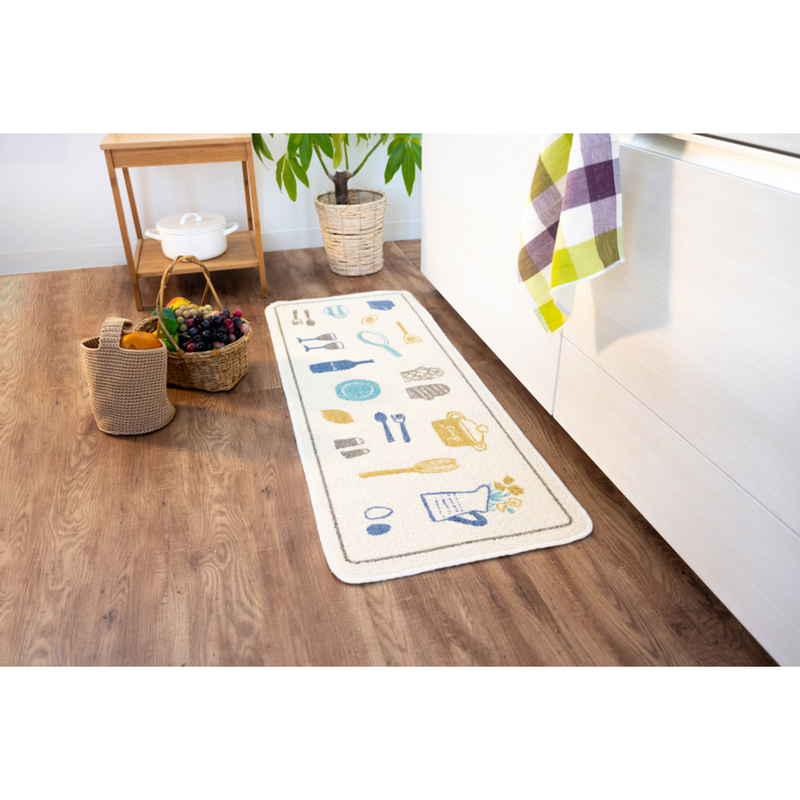 丸洗い可能なかわいい柄のキッチンマット幅120cmです。