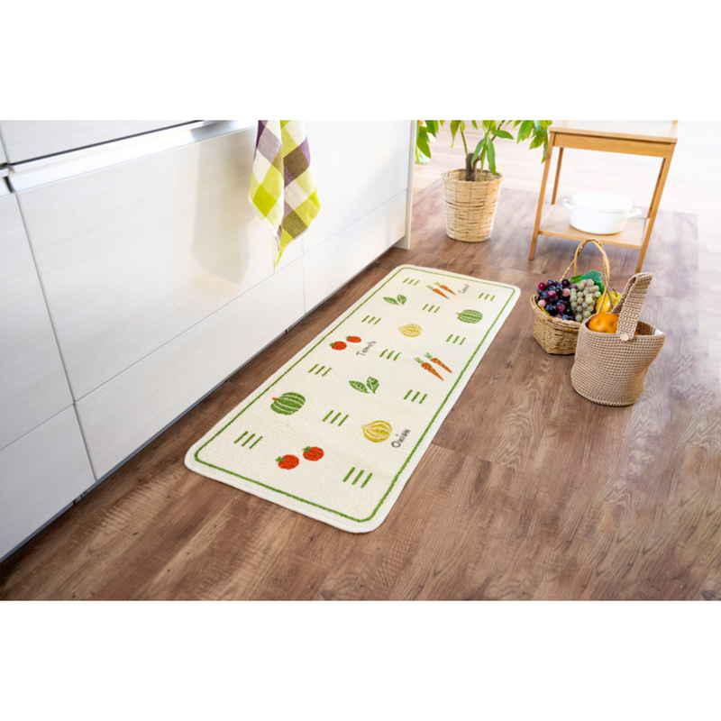 オカ キッチンマット総柄 45x120cm ネコ 野菜 ガーデン ベジタブル