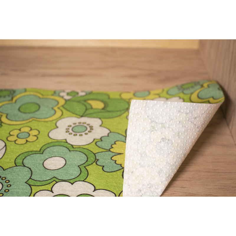 どこか懐かしい色合いとポップなお花柄で、1枚敷くだけで華やかになります。