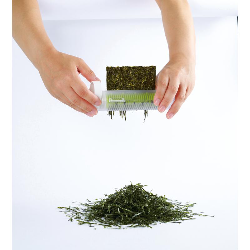 ●板海苔をセットして回すだけで簡単に刻みのりができます