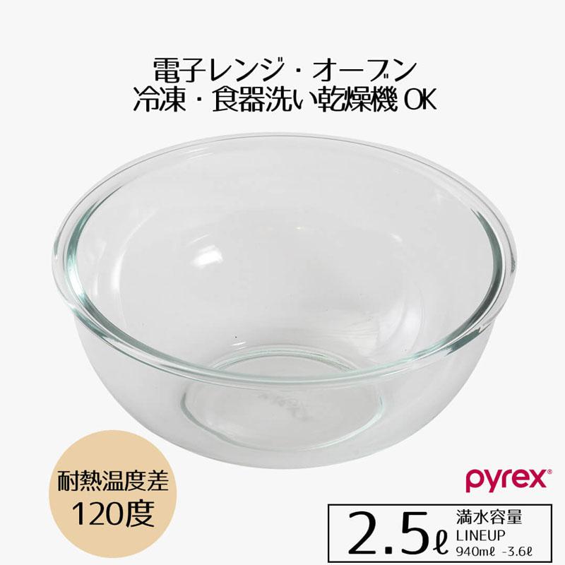 ボウル 耐熱 ガラス 2.5L 電子レンジ対応 食洗機対応 冷凍庫可 下ごしらえ 加熱 サラダ PYREX パイレックス 丸型 そのまま食卓