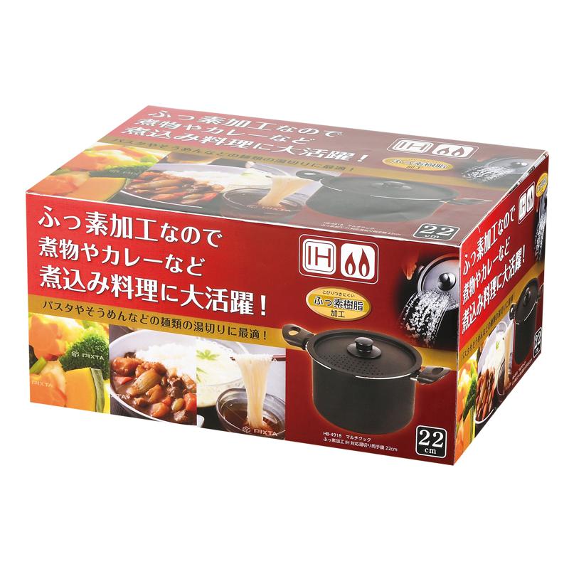 パール金属 マルチクック ふっ素加工IH対応湯切り両手鍋 22cm HB−4918