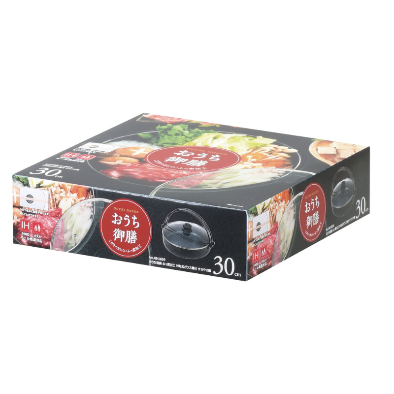 [材料の種類](本体)アルミニウム合金、(はり底)ステンレス鋼(クロム12%)、(つる)鉄(エポキシ樹脂塗装)、(蓋・品名)強化ガラス製器具、(強化の種類)全面物理強化、(縁リング)ステンレス鋼、(蓋つまみ)フェノール樹脂(耐熱温度150度)、(座板)ナイロン(耐熱温度180度)