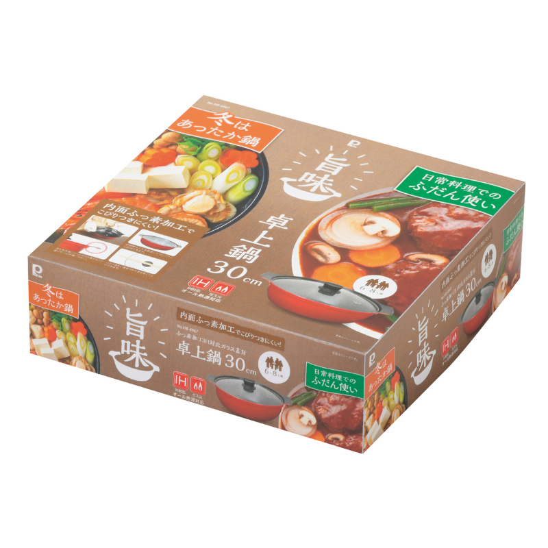 パール金属 旨味 ふっ素加工IH対応ガラス蓋付卓上鍋 30cm HB-6967