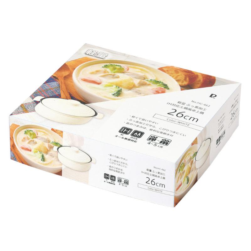 パール金属 軽量 ふっ素加工 IH対応 土鍋風卓上鍋 26cm ホワイト HC-0462