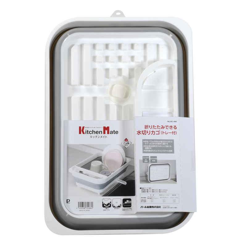 パール金属 水切りかご キッチンメイト 折りたたみできる 水切りカゴ ポケット付