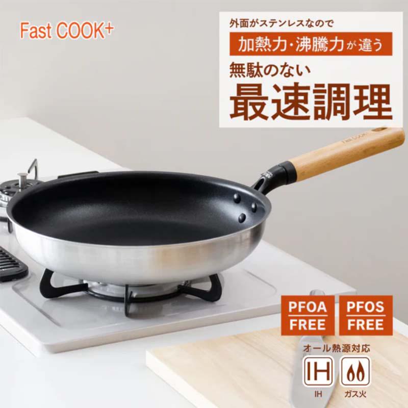 パール金属 ファストクック+ 2層鋼ダイヤモンドコート木柄フライパン 28cm HC-0888