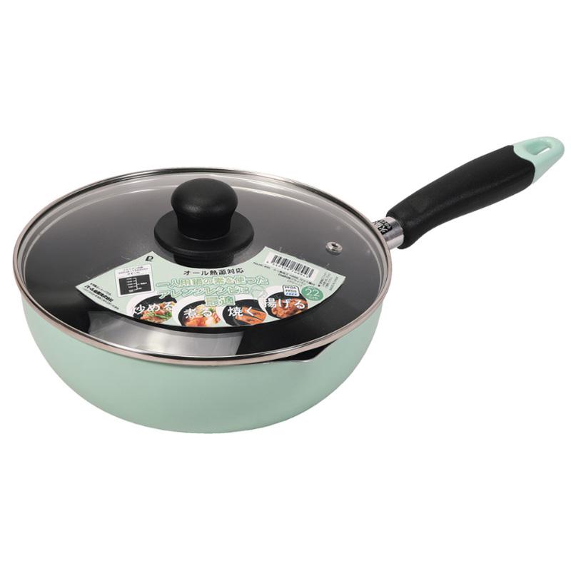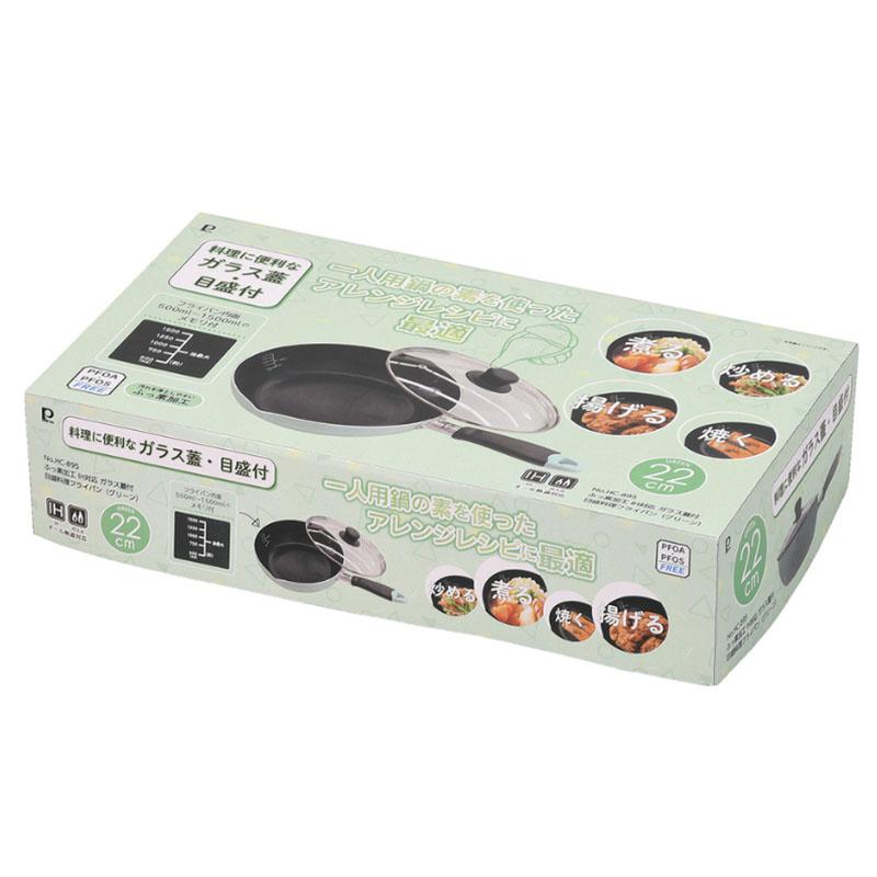 パール金属 ふっ素加工 IH対応 ガラス蓋付目盛料理フライパン 22cm グリーン HC-0894