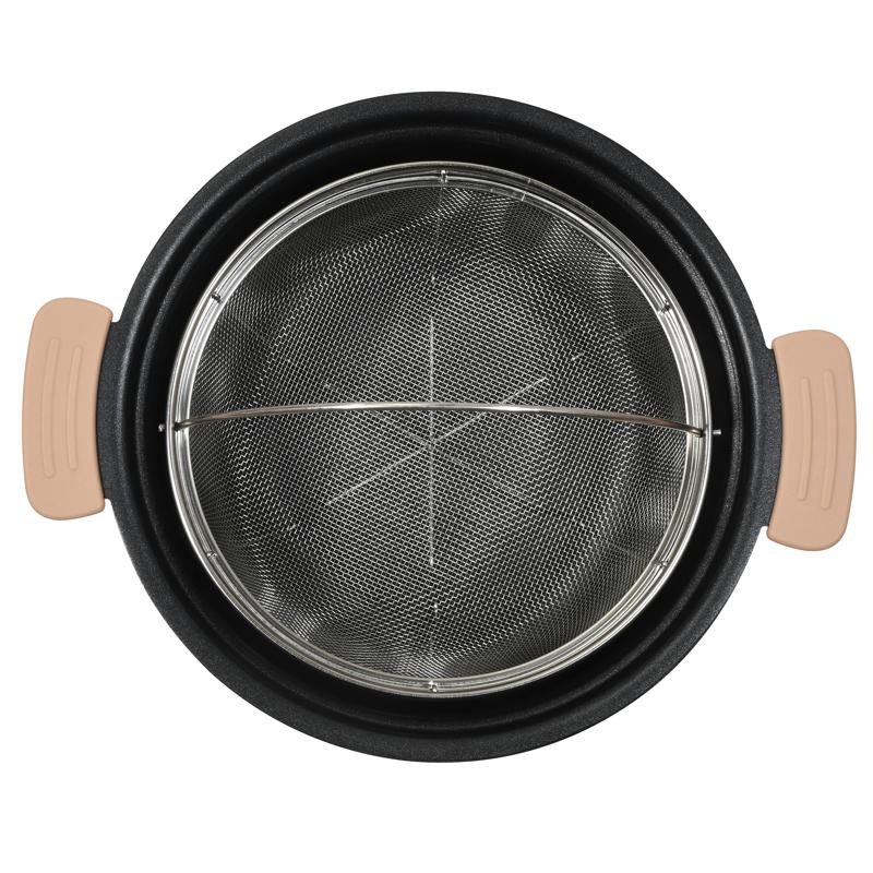 ●通常の卓上鍋にぴったりサイズの手付きザル付、蒸す調理がが追加した多用途鍋