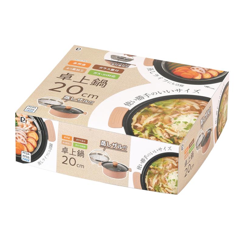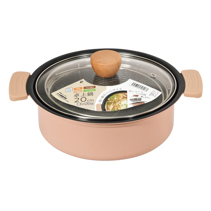 パール金属 多用途 ふっ素加工IH対応ガラス蓋付卓上鍋 20cm ザル付 HC−0896