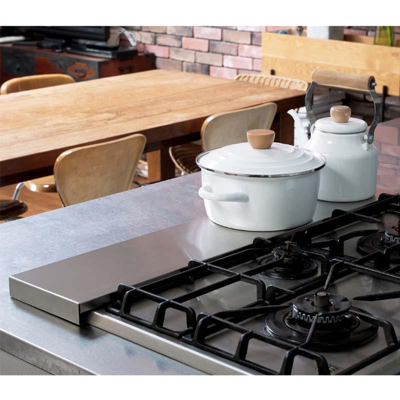 ・奥行きがワイドサイズで鍋やケトルの一時置きにも使えます