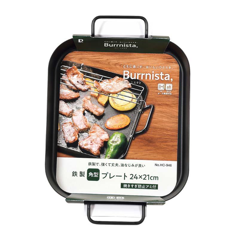 パール金属 バーニスタ 鉄製角型プレート 24×21cm 焼きすぎ防止アミ付 HC-0946