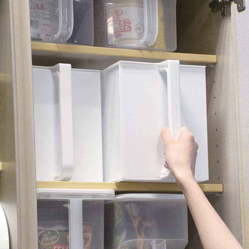 ・吊り戸棚や高いところでもラクに出し入れしやすいハンドル付き