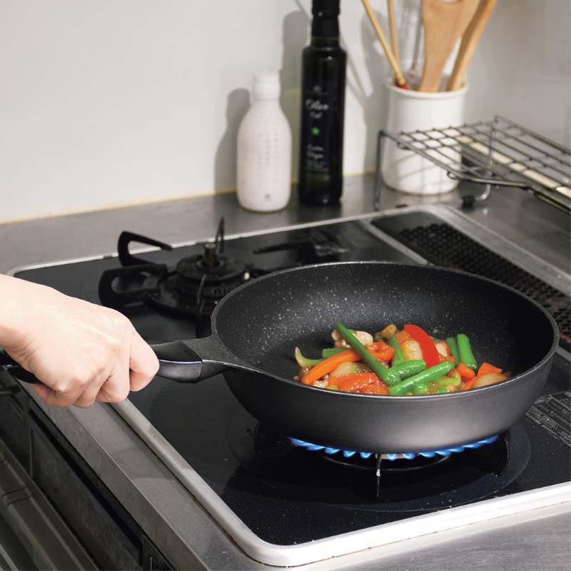 ・材料:(本体)アルミニウム合金、(取っ手)フェノール樹脂(耐熱温度150度)