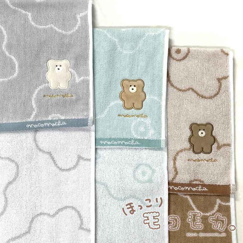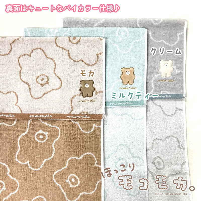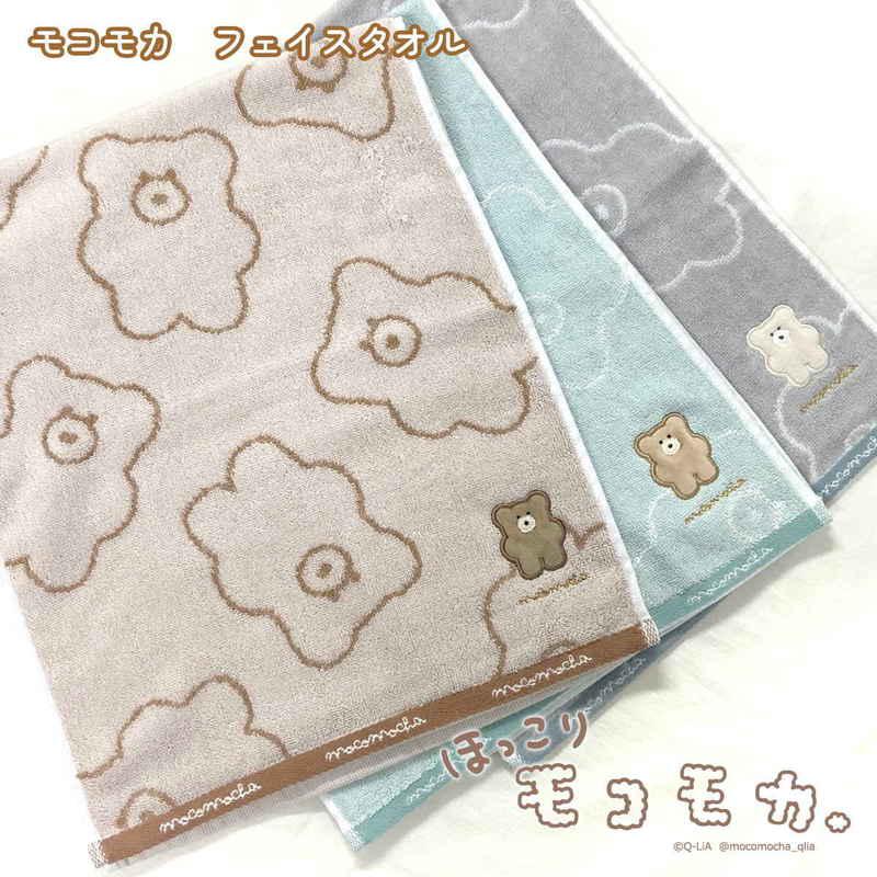 ほっこりモコモカの総柄がキュートなフェイスタオルです。