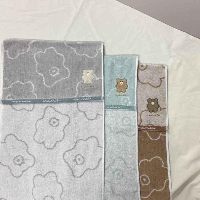 刺繍ワッペン付きの、ふわふわコットン素材のタオルです。
