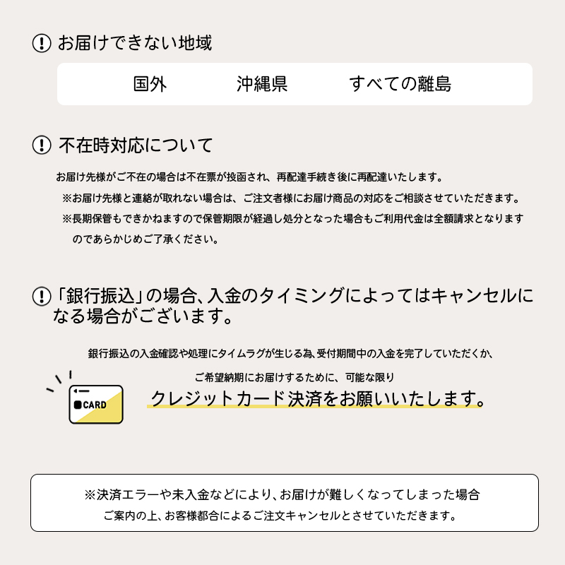 ☆注文後は「送付先・注文者情報・注文キャンセル」など全ての変更ができません。