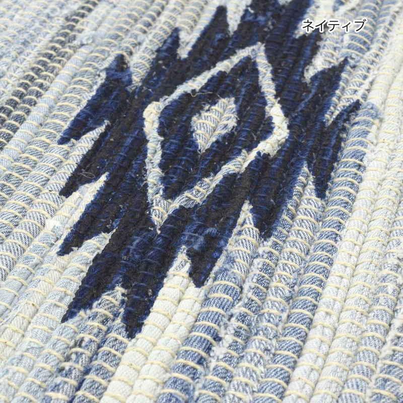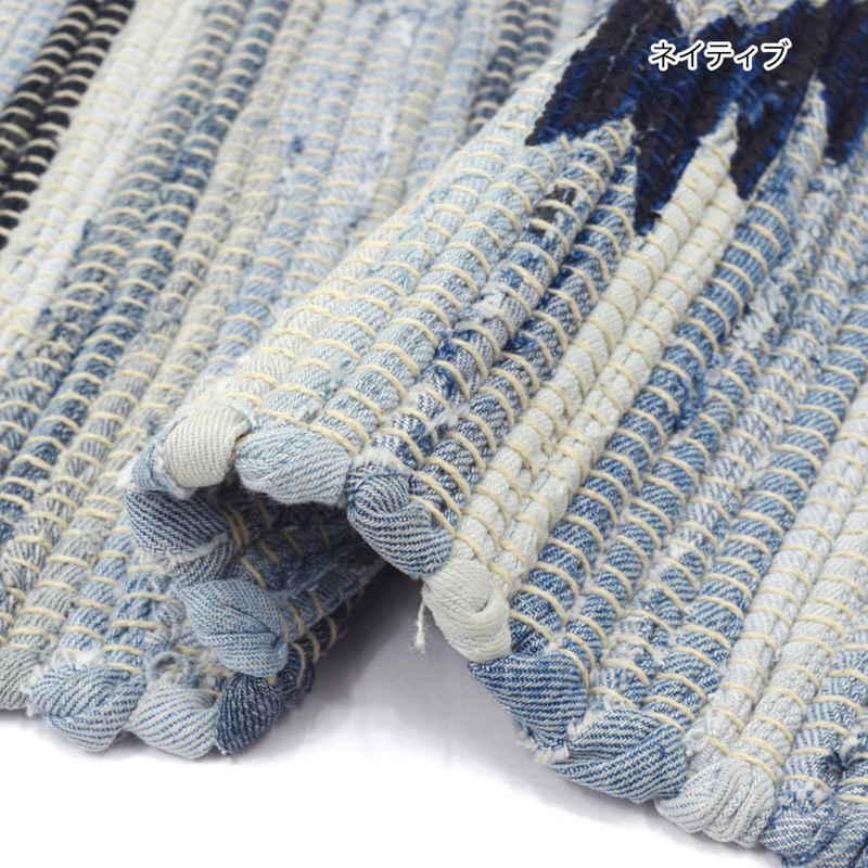 リサイクルデニムやはぎれを編み込むインドの伝統的なリサイクル手法で作られています。