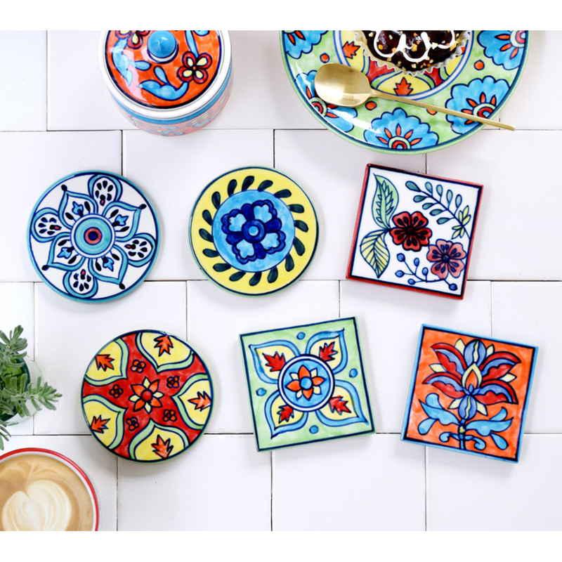 インドの職人がハンドペイントでひとつひとつ丁寧に描いた、エスニックの世界観が楽しめるコースターです。