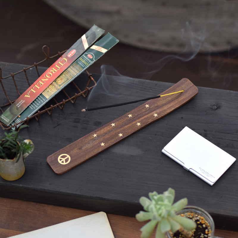 真鍮のワンポイントを施したスティック専用のお香立てです。