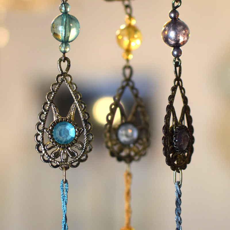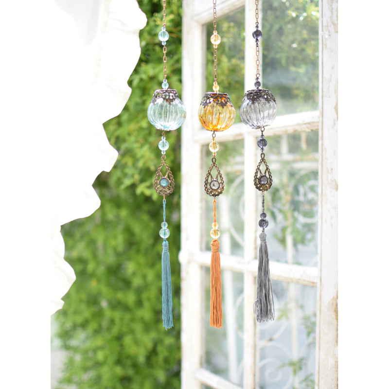 まるでランプのようなガラスのオーナメントに涙型のモチーフがポイントです。