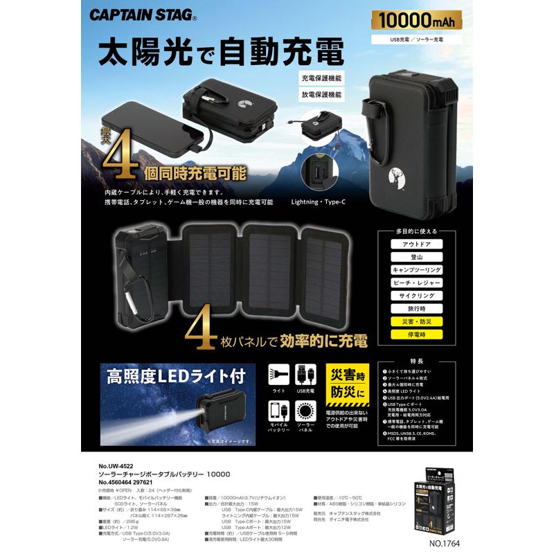 キャプテンスタッグ ソーラーチャージポータブルバッテリー 10000 UW−4522