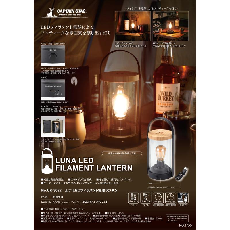 キャプテンスタッグ ルナ LEDフィラメント電球ランタン UK−3022