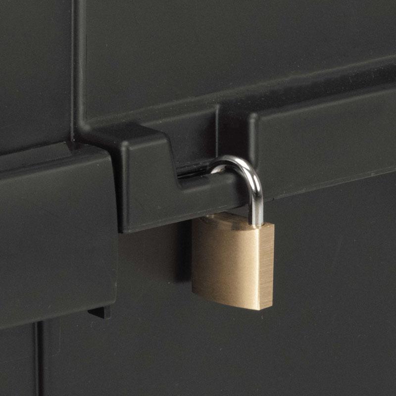 ・市販のワイヤーロープや錠前で施錠可能(施錠穴6mm)
