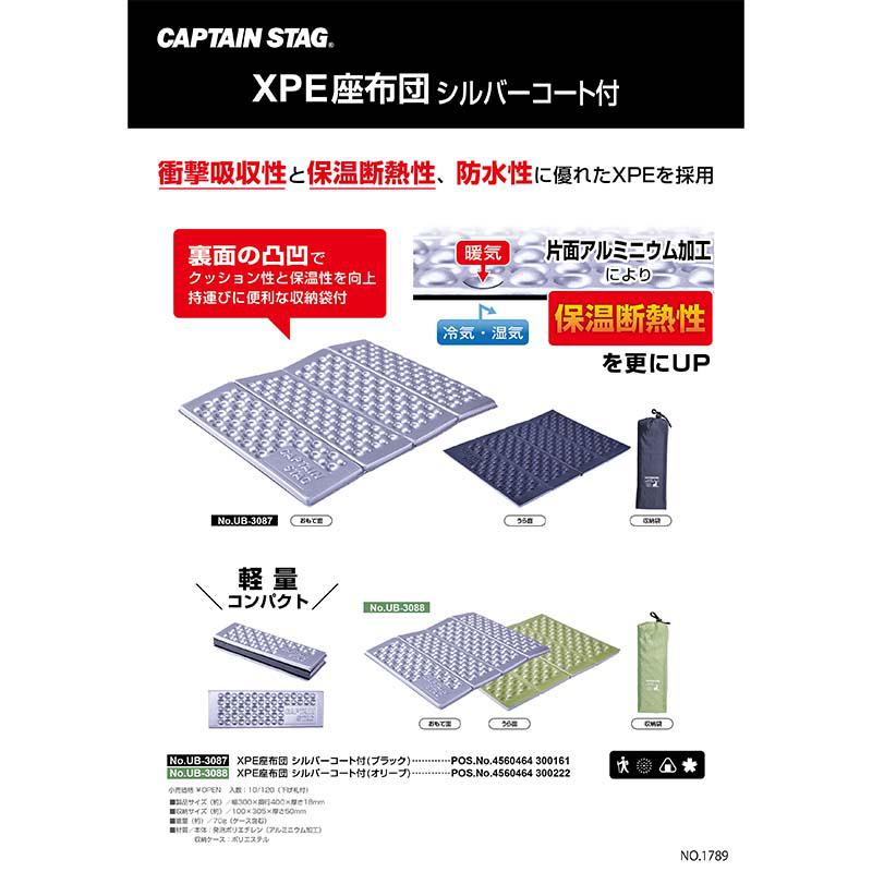 キャプテンスタッグ XPE座布団 シルバーコート付 ブラック UB-3087