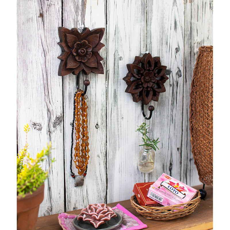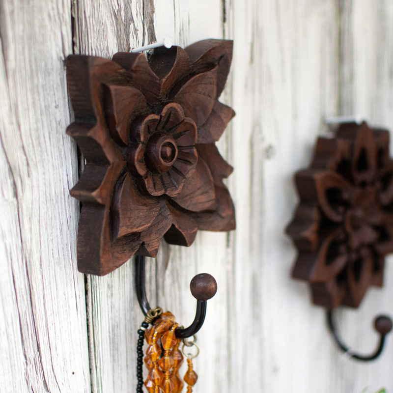 トモ・コーポレーション フック カービングフック 木製 フラワー