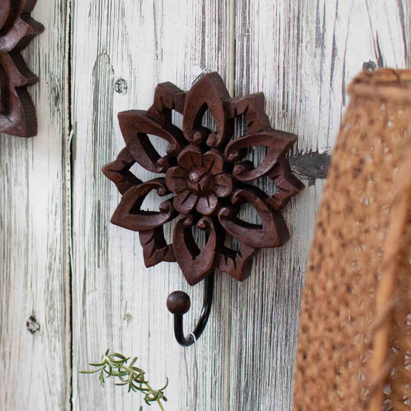 トモ・コーポレーション フック カービングフック 木製 フラワー2