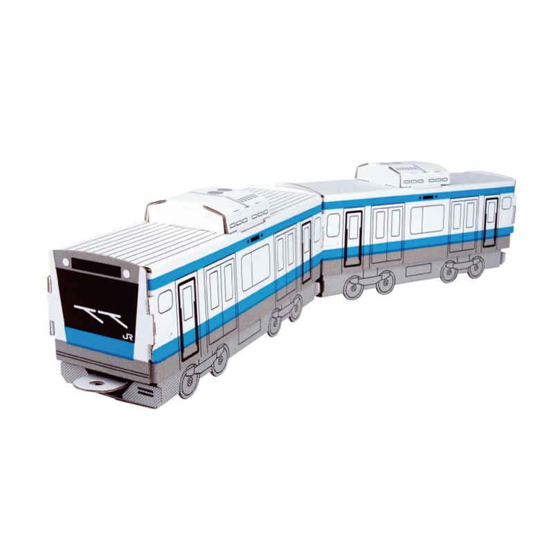 人にも自然にも優しいダンボール素材の工作キット「hacomo kids」ハッピーレールシリーズの京浜東北線 E233系です。