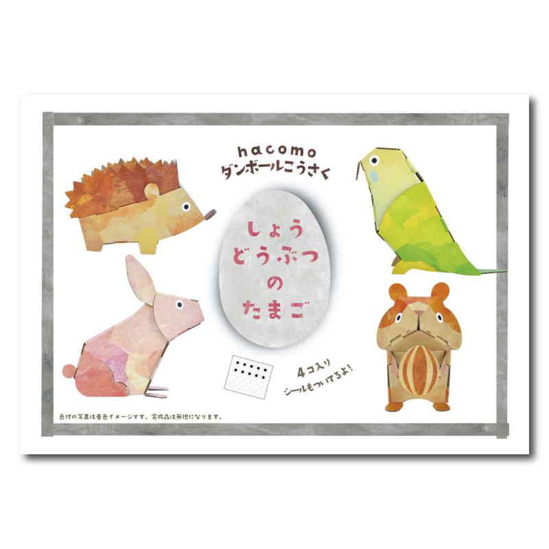 人にも自然にも優しいダンボール素材の工作キット「hacomo egg」シリーズの小動物のたまごです。