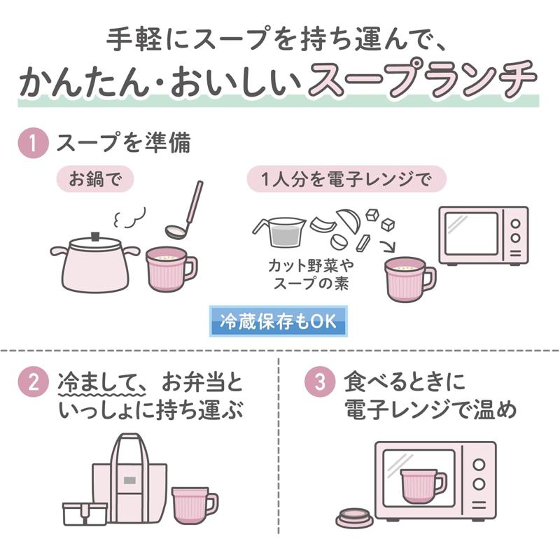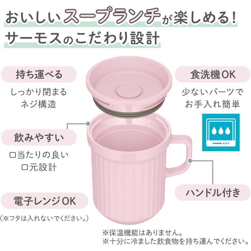 スープマグ フォギーピンク 電子レンジOK 冷蔵保存OK 食洗器OK DJU-320 フタつき ハンドル付き