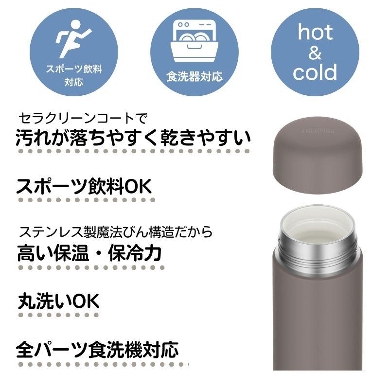 ■材質:内びん/ステンレス鋼(セラミック塗膜加工)、胴部/ステンレス鋼(アクリル樹脂塗装)、フタ/ポリプロピレン(発泡ポリプロピレン内蔵)、パッキン/シリコーンゴム