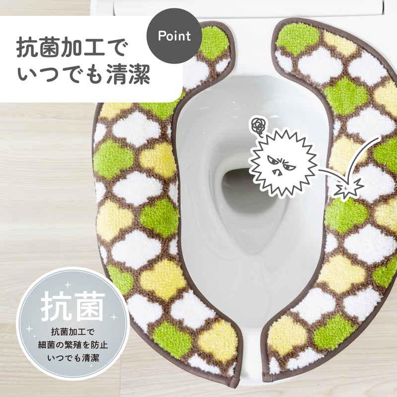 カキウチ 便座カバー ふんわリッチ便座マット モロッカン U型 O型 兼用 アースグリーン