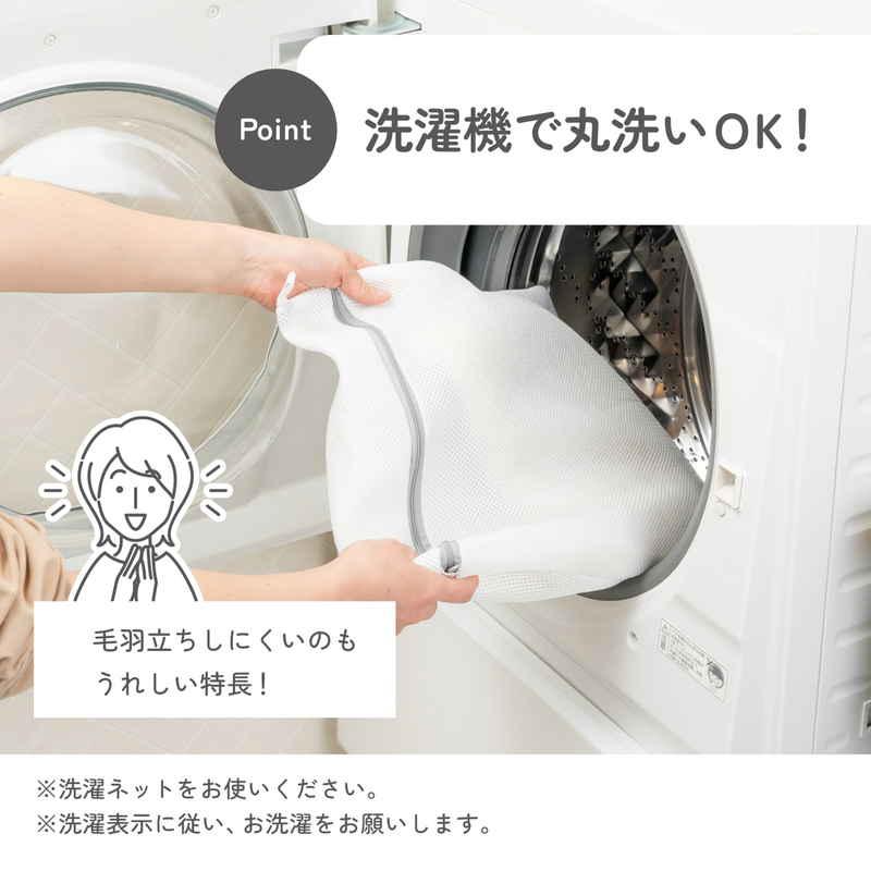洗濯機で丸洗いができ、清潔に使えます。