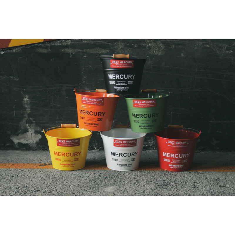ポップなカラー展開のブリキバケツです。