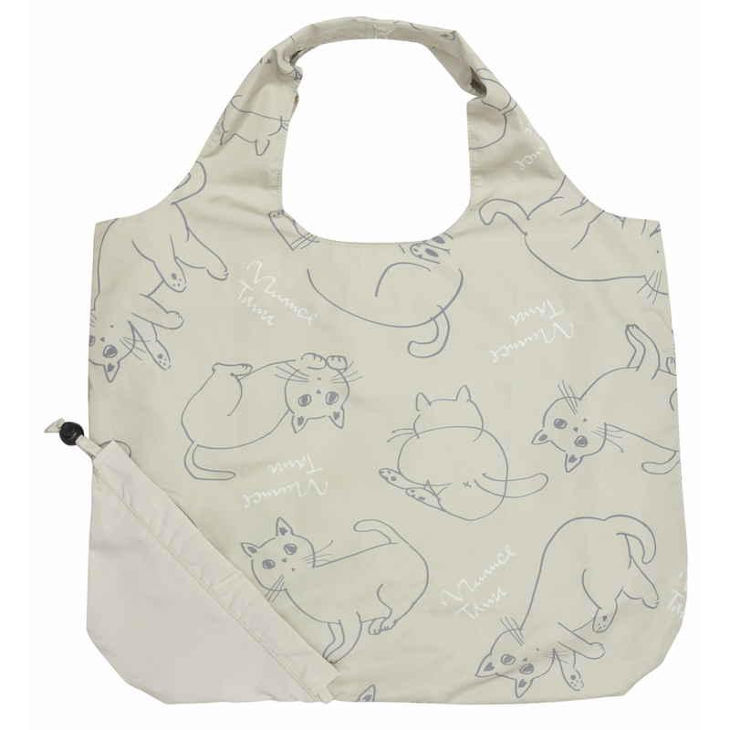 ノアファミリー エコバッグ 巾着収納 ネコ 持ち運び ベージュ