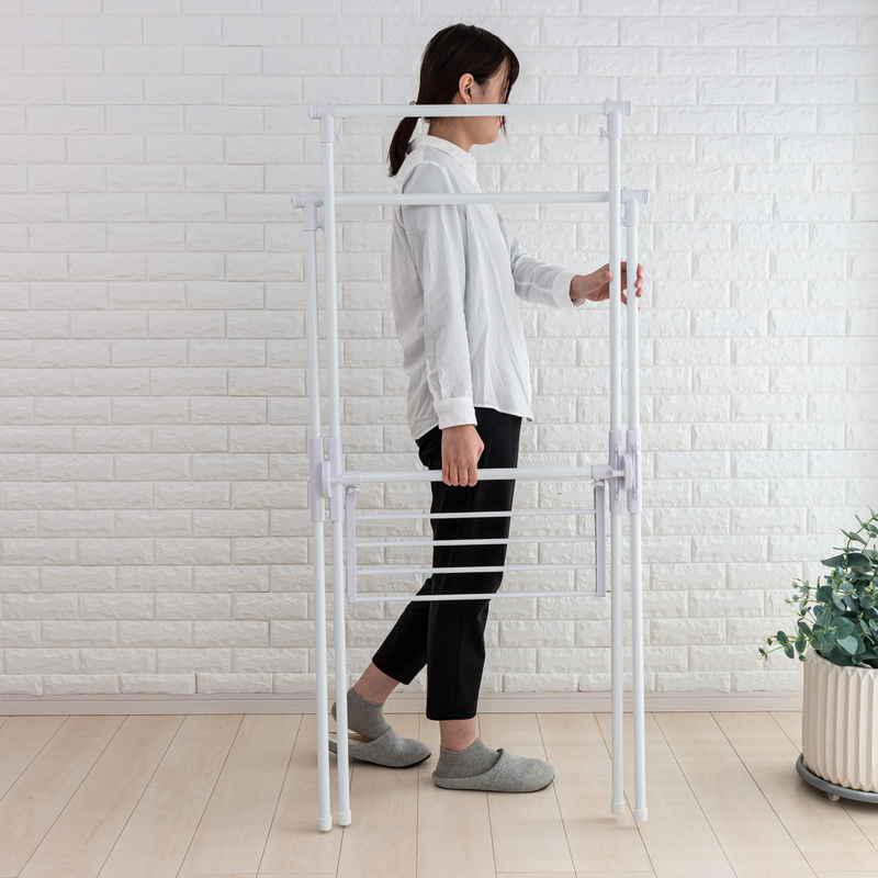 通気性の良い段違い設計なので、省スペースで効率良く干せます。