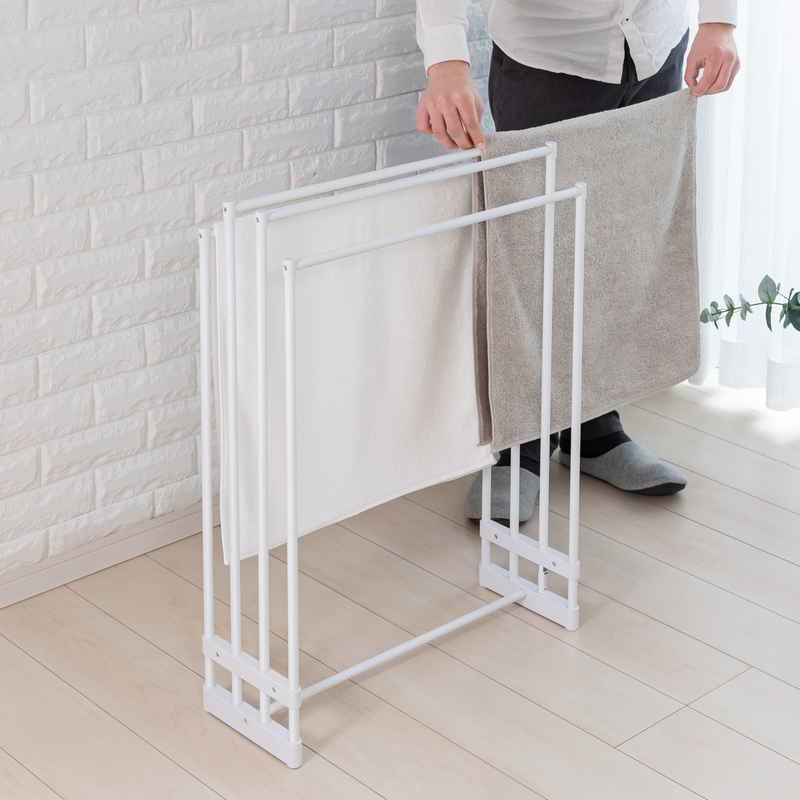 狭いスペースでもしっかりとタオルを干せるので、アパートやマンションの住まいにもぴったりです。