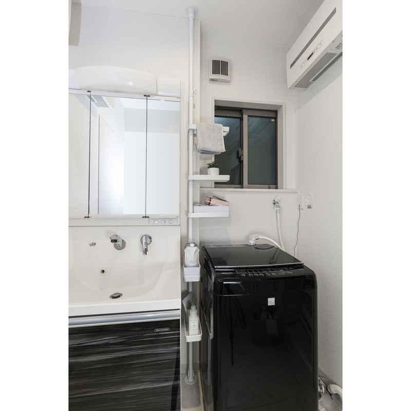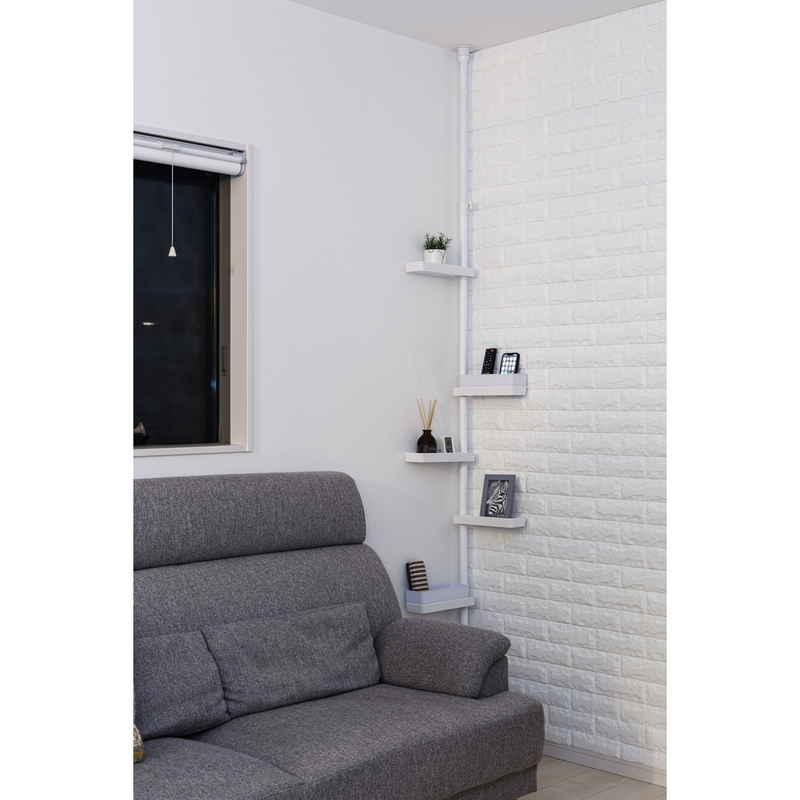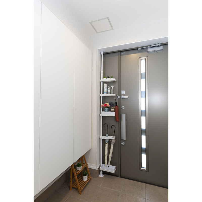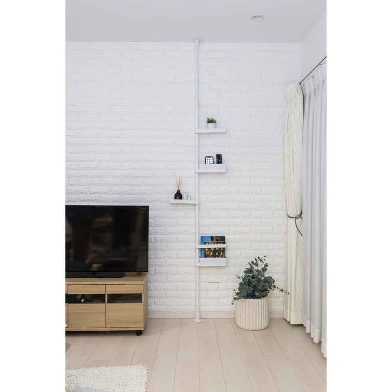 積水樹脂商事 突っ張り スリムラック 深型トレイ付き 高さ200〜275cm ホワイト
