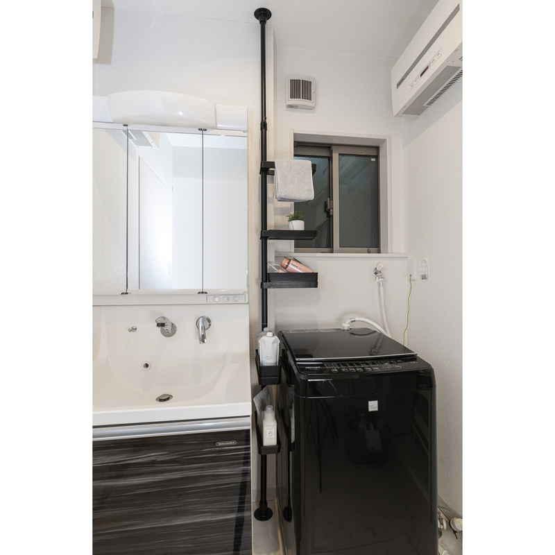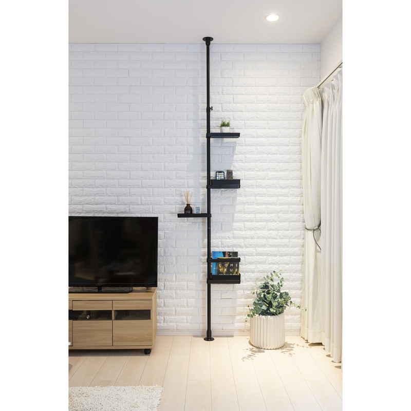 積水樹脂商事 突っ張り スリムラック 深型トレイ付き 高さ200〜275cm ブラック