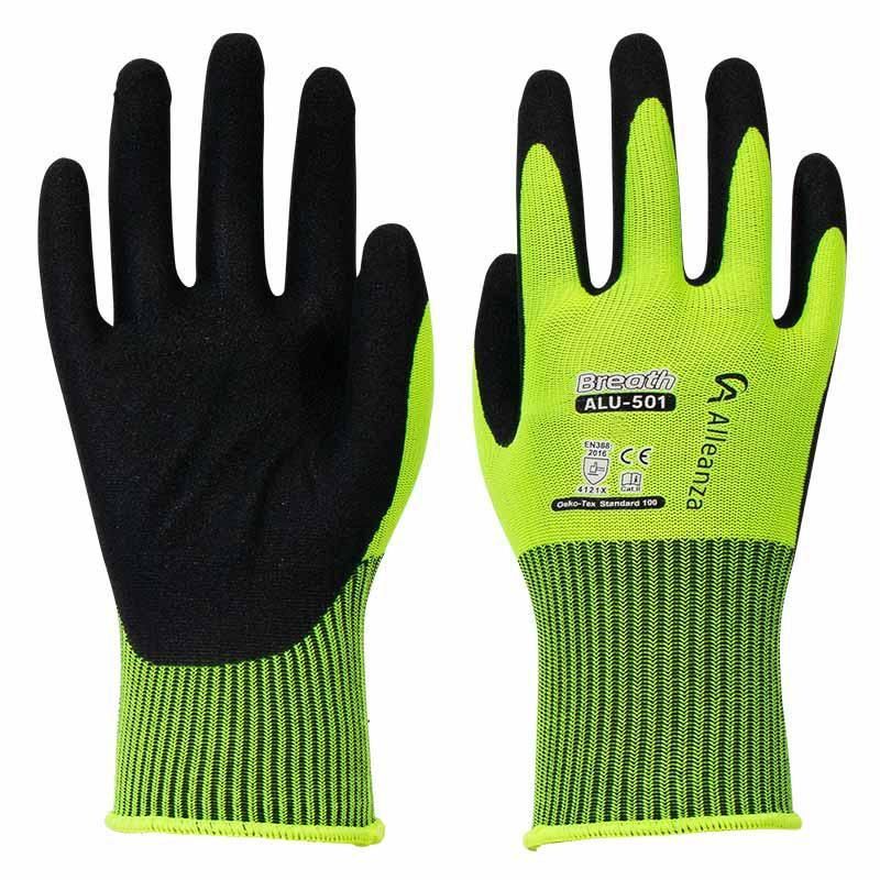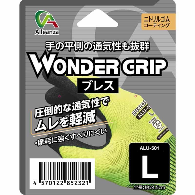 WGブレスニトリル背抜き手袋 L イエロー 黄 ブレス ALU-501 ワンダーグリップ WG501 作業手袋 アレンザ ユニワールド