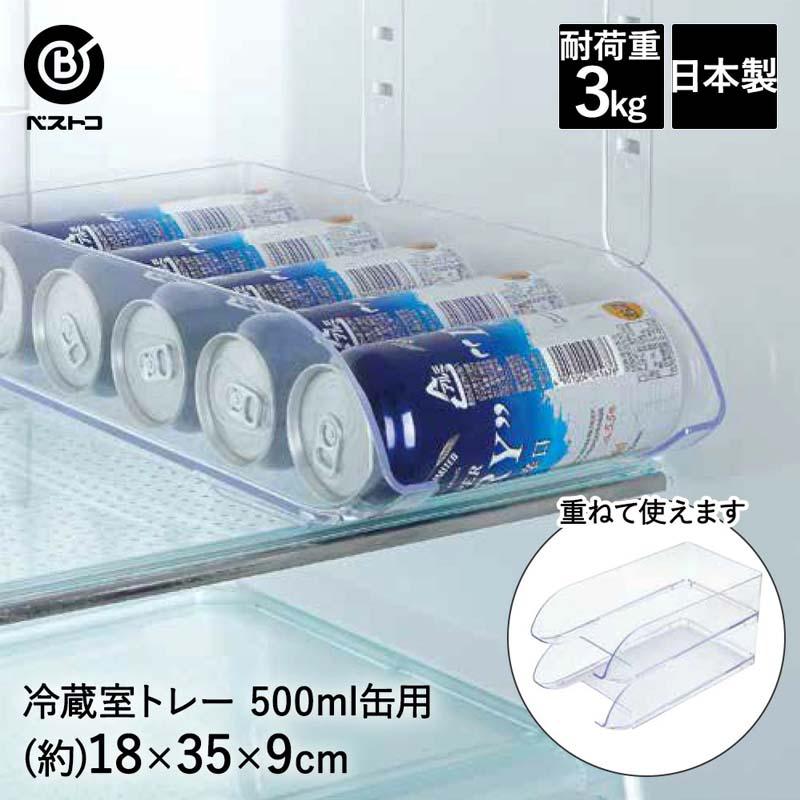 冷蔵室 冷蔵室 トレー トレイ ストレージ ケース 引き出し 収納 ボックス 整理 小物 透明 クリア 仕切り 野菜室 缶 飲み物 500ml 箱 プラスチック