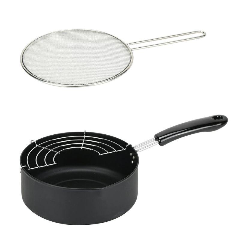 商品名:油はね防止ネット付揚げ鍋 20cm